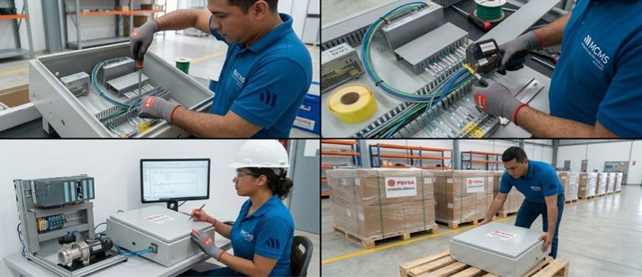 Este servicio comprende el ensamblaje especializado de componentes internos en cajas de control metálicas, destinadas a funcionar como unidades de transmisión remota de datos para los variadores de los motores eléctricos en pozos petroleros. El proyecto se localiza en la División Ayacucho de la Faja Petrolífera del Orinoco, específicamente en la Unidad de Producción Pesado y Extrapesado.